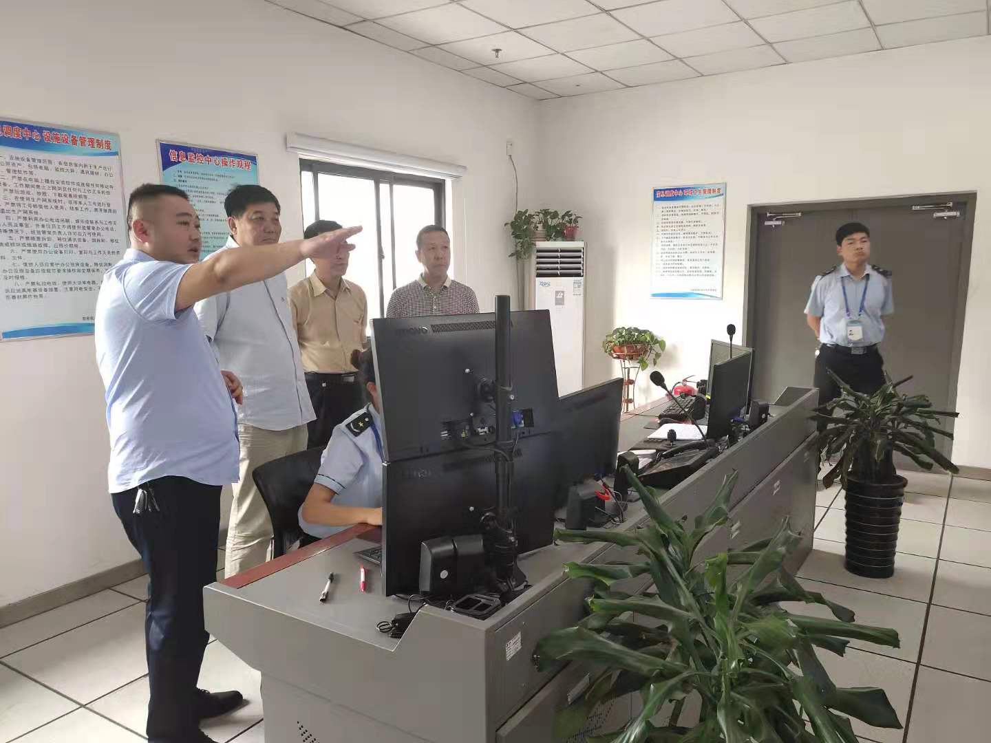 领导们一行来到郑州机场出租车管理站,视察了出租车管理站智慧化管理系统建设及现场设备设施运行情况。在管理站信息调度中心认真听取管理站站长张强对智慧化管理系统的讲解,并对现场管理提出建议和要求。